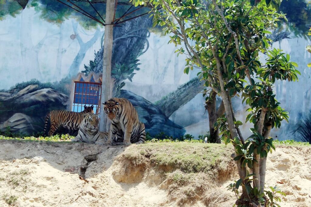 Được yêu thích không kém là những “chúa sơn lâm” Đông Dương. Khu vực sinh sống của các chú hổ được bố trí rộng rãi với cồn cát, thảm cỏ, cây xanh, hồ nước nhân tạo…
